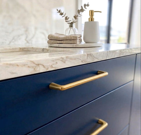Gold Cabinet Handles – Brushed Slimline Square Edge (96mm & 128mm)
