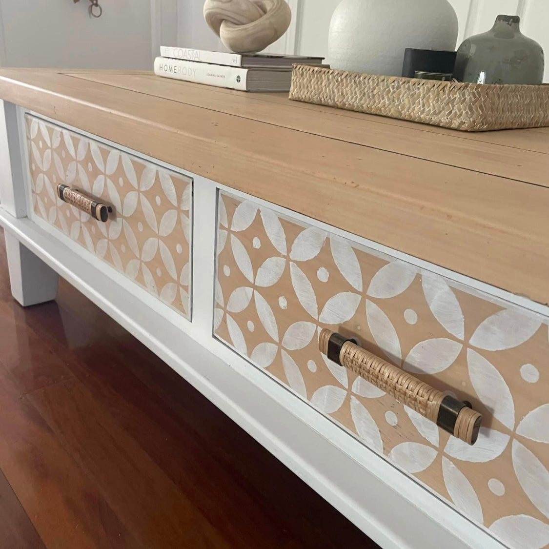 These natural rattan drawer handles effortlessly enhance coastal, Hamptons, and modern furniture and cabinetry with their versatile appeal.